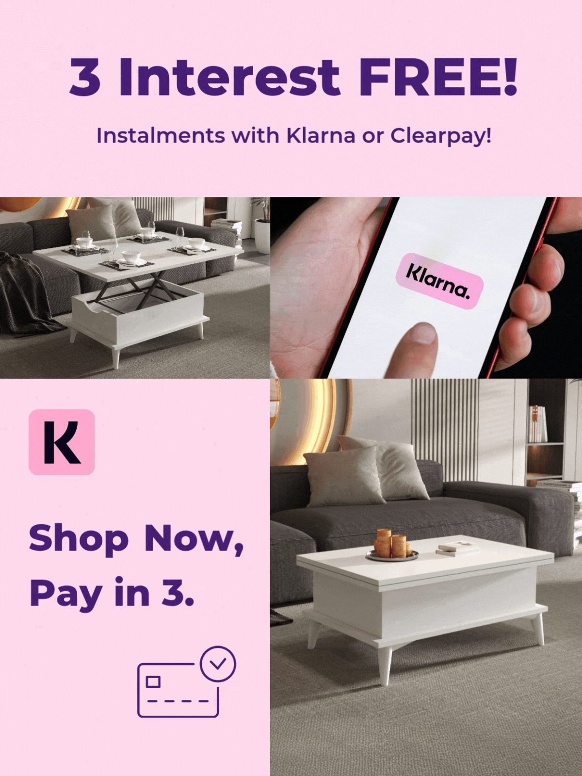 with Klarna or Clearpay